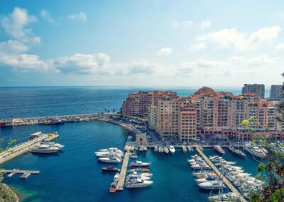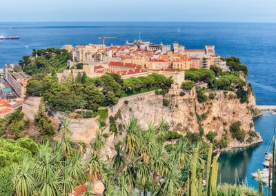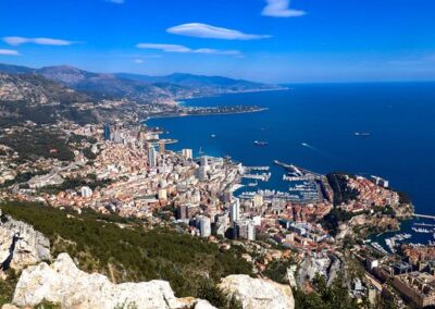 Survol de Monaco, incluant des vues imprenables sur le port de Monaco, le Rocher de Monaco, le Palais Princier, le Circuit de F1 de Monaco, et la Baie de Monaco.